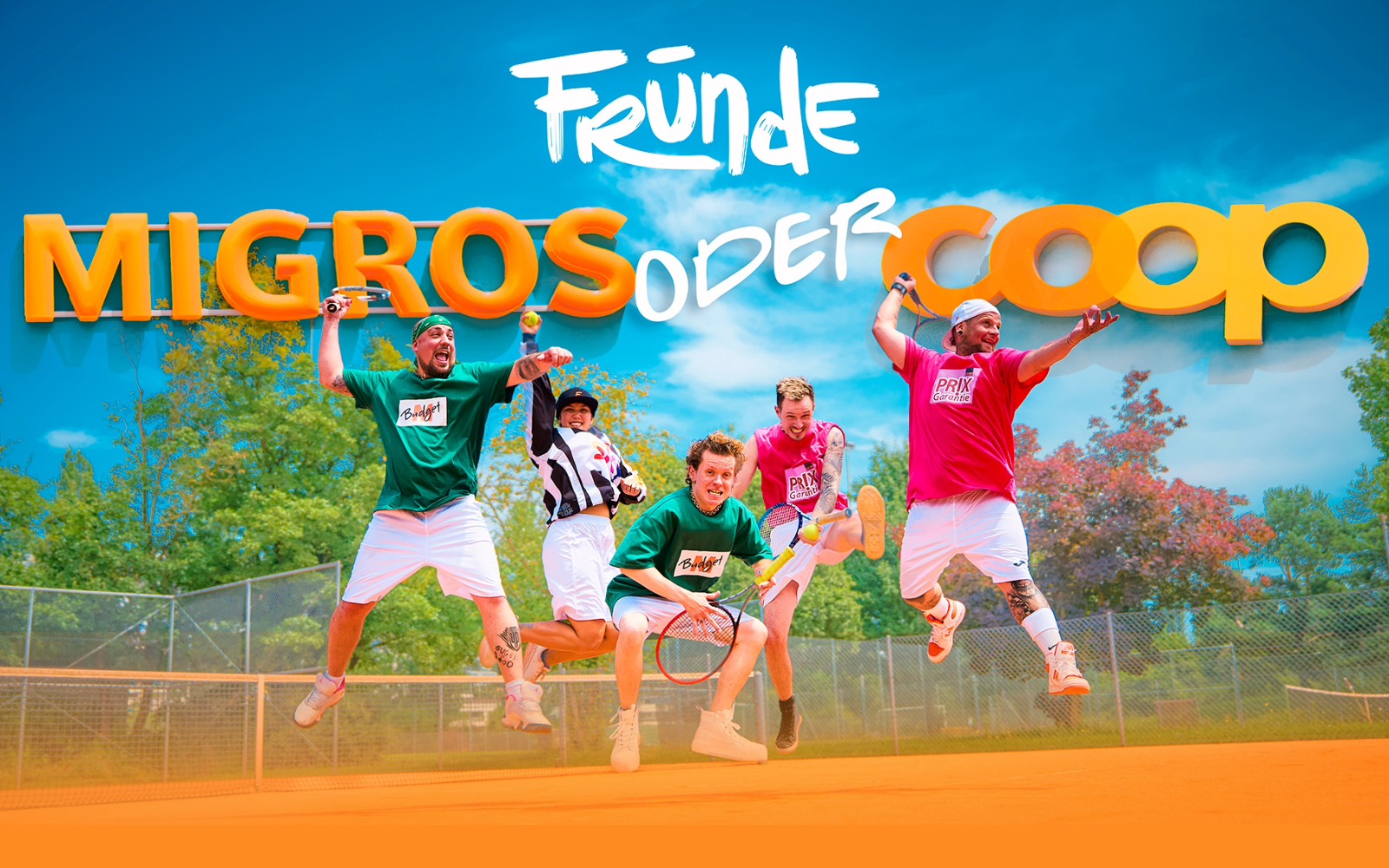 Im Musikvideo zu Migros oder Coop inszenieren Fründe mit einem Augenzwinkern die alltäglichen Gegensätze und kleinen Konflikte, die uns trotz allem verbinden.
